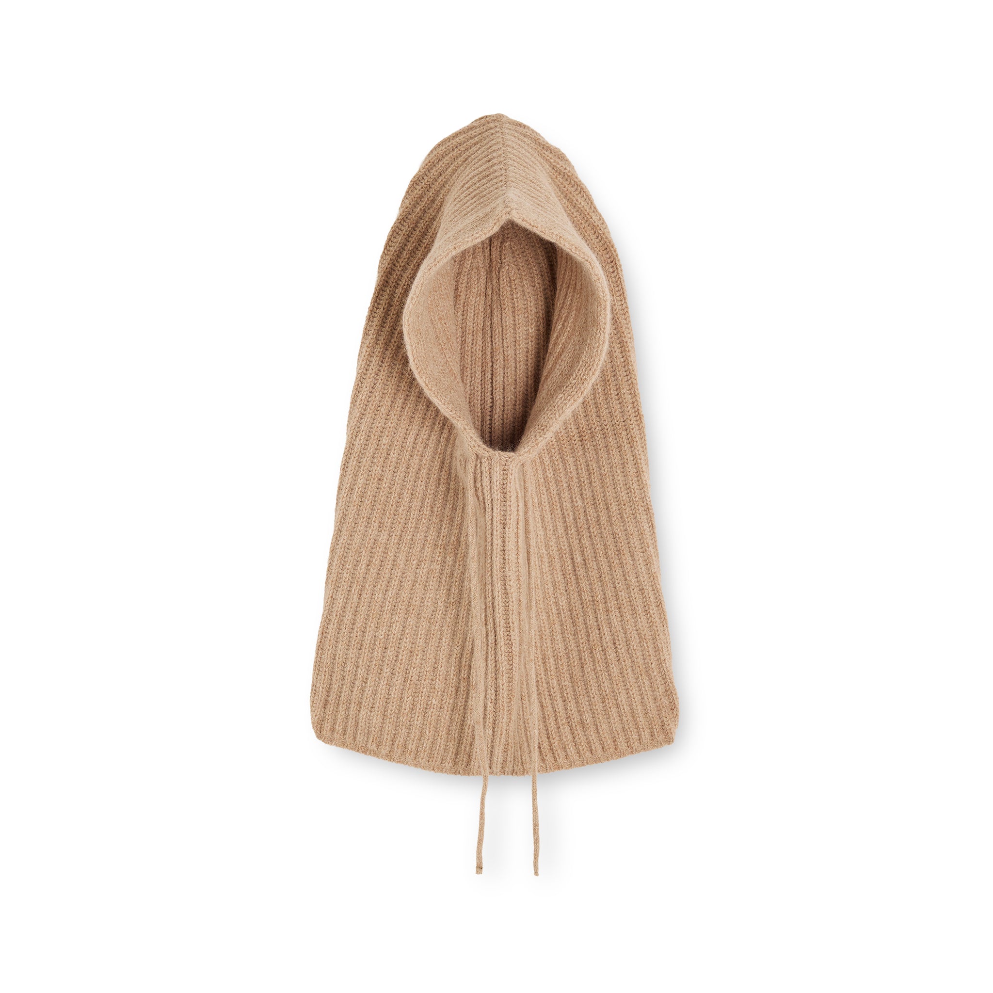 À mi-chemin entre la cagoule et le col, elle se porte de deux façons selon l’envie. Tricotée en maille côtelée et ajustable grâce à un cordon , elle enveloppe naturellement le visage ou le cou, offrant un tombé souple et un confort chaleureux.